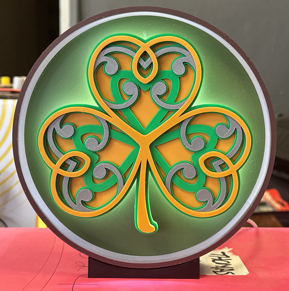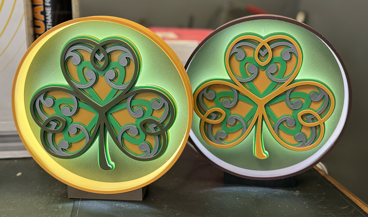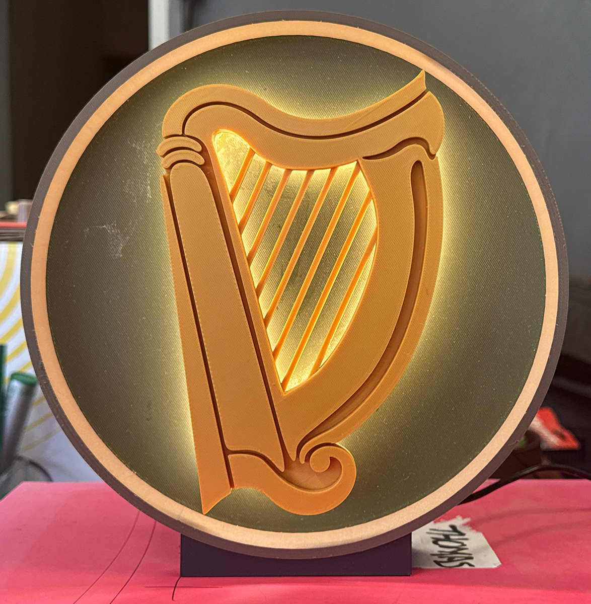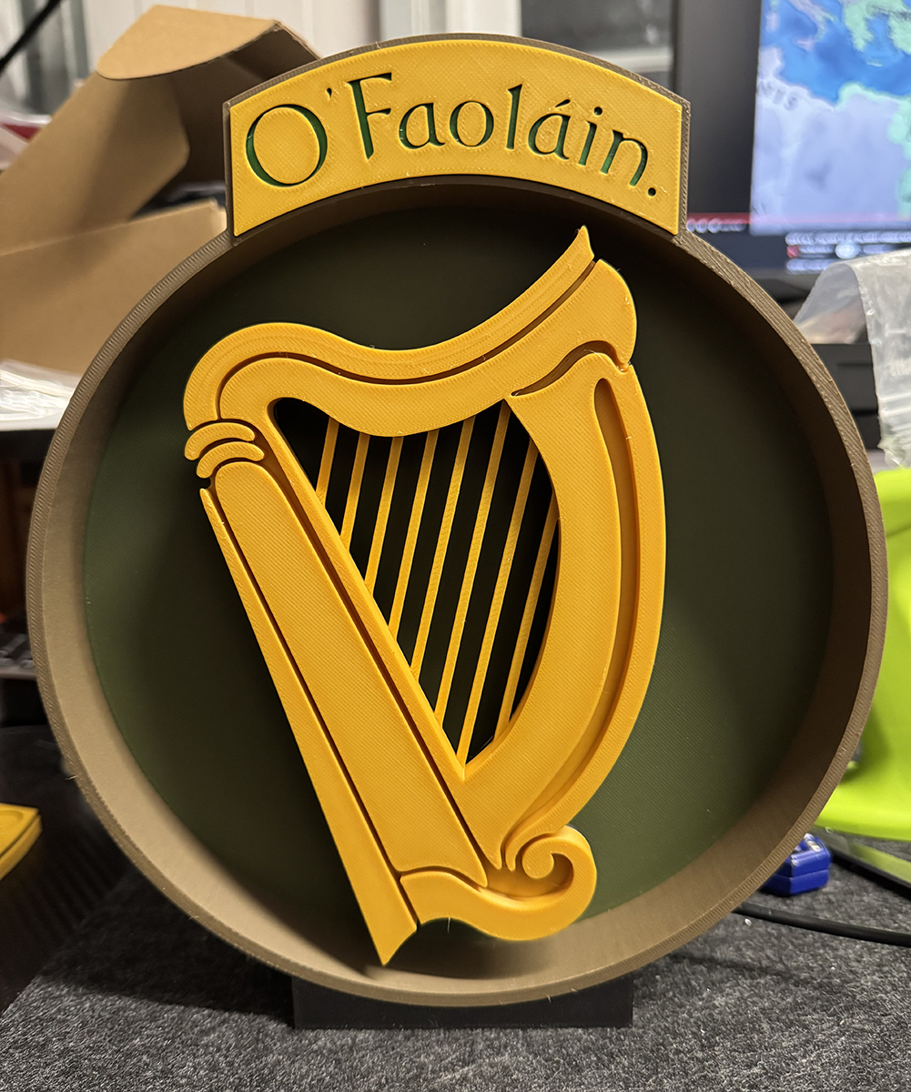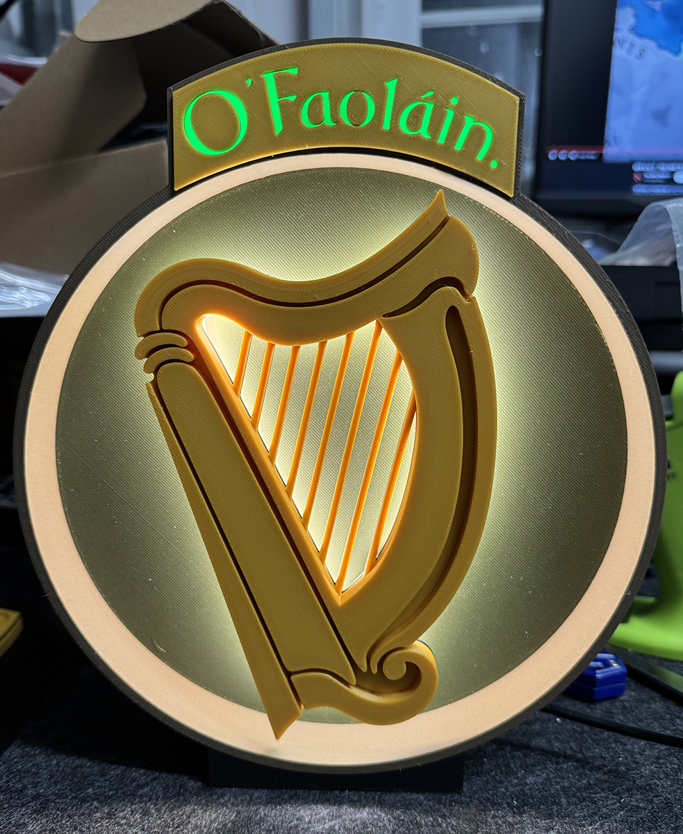 The rear frame of the Ireland series is printed in Wood Effect PLA. The center icons are printed in a mixture of wood effect and standard PLA, offering a wider choice of colours than the wood effect alone. Lamps can be customised with your family name if desired.