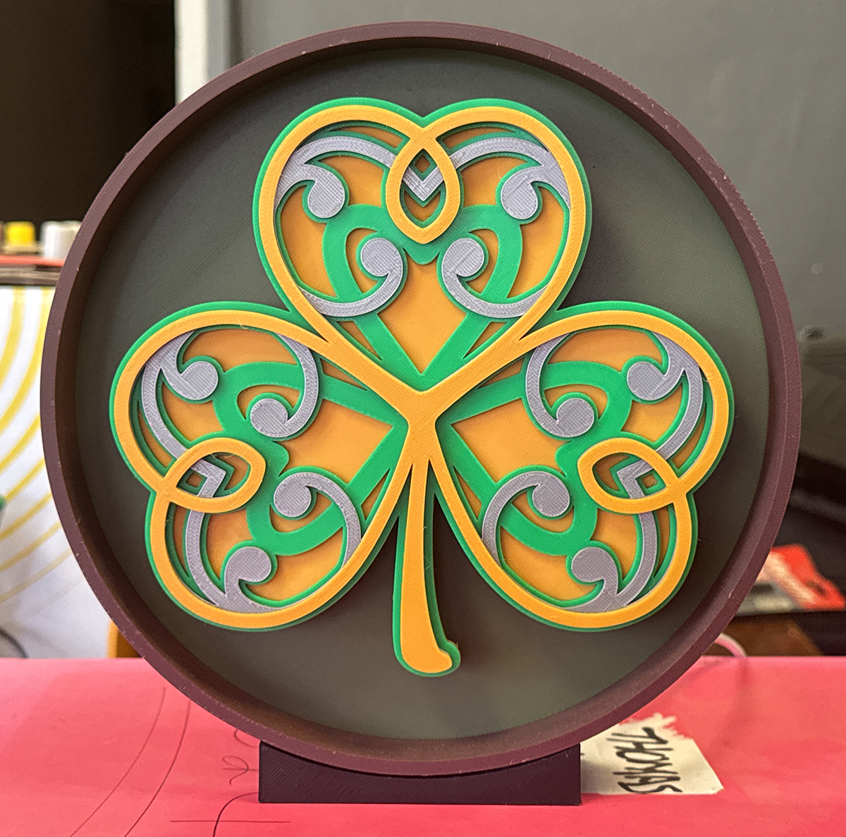 All 3D printed artwork and other items produced by RJDD are made using our Bambu Lab P1S printer. The maximum size of the prints produced is 256mm x 256mm x 256mm, although in practice multi coloured prints are often slightly smaller owing to the nature of the 3D printing process. We can use a maximum of 12 colours in a single print using our current setup.